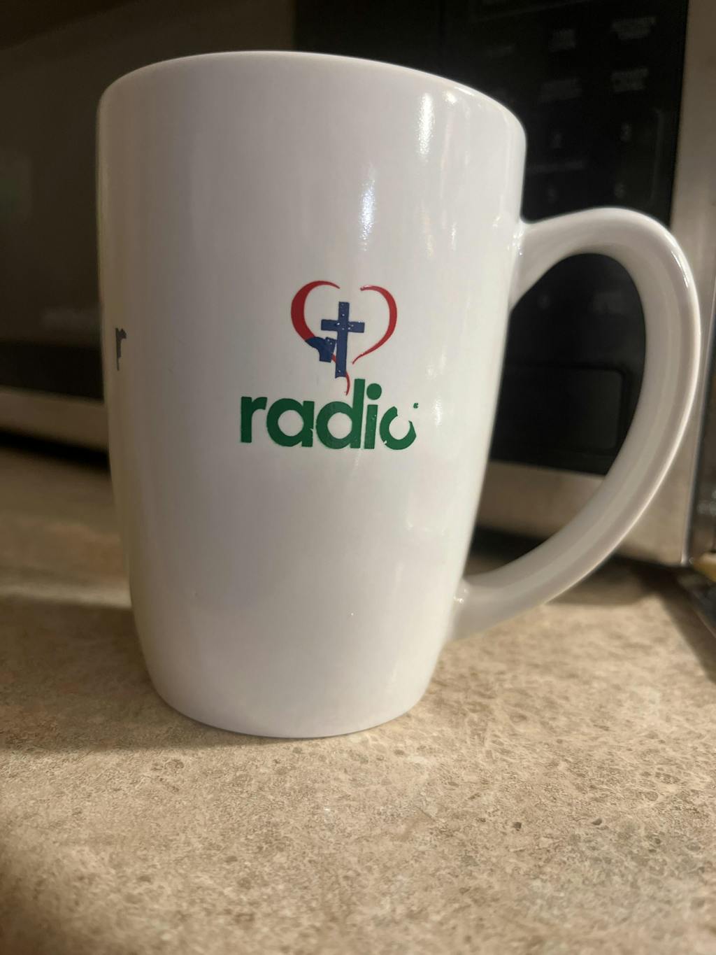 Enjoy your favorite beverage in style with this classic White Ceramic Mug. Perfect for coffee, tea, or hot chocolate, this mug features a sleek and durable design, making it an essential addition to your daily routine. The glossy white finish is complemented by the vibrant "Relevant Radio" logo.